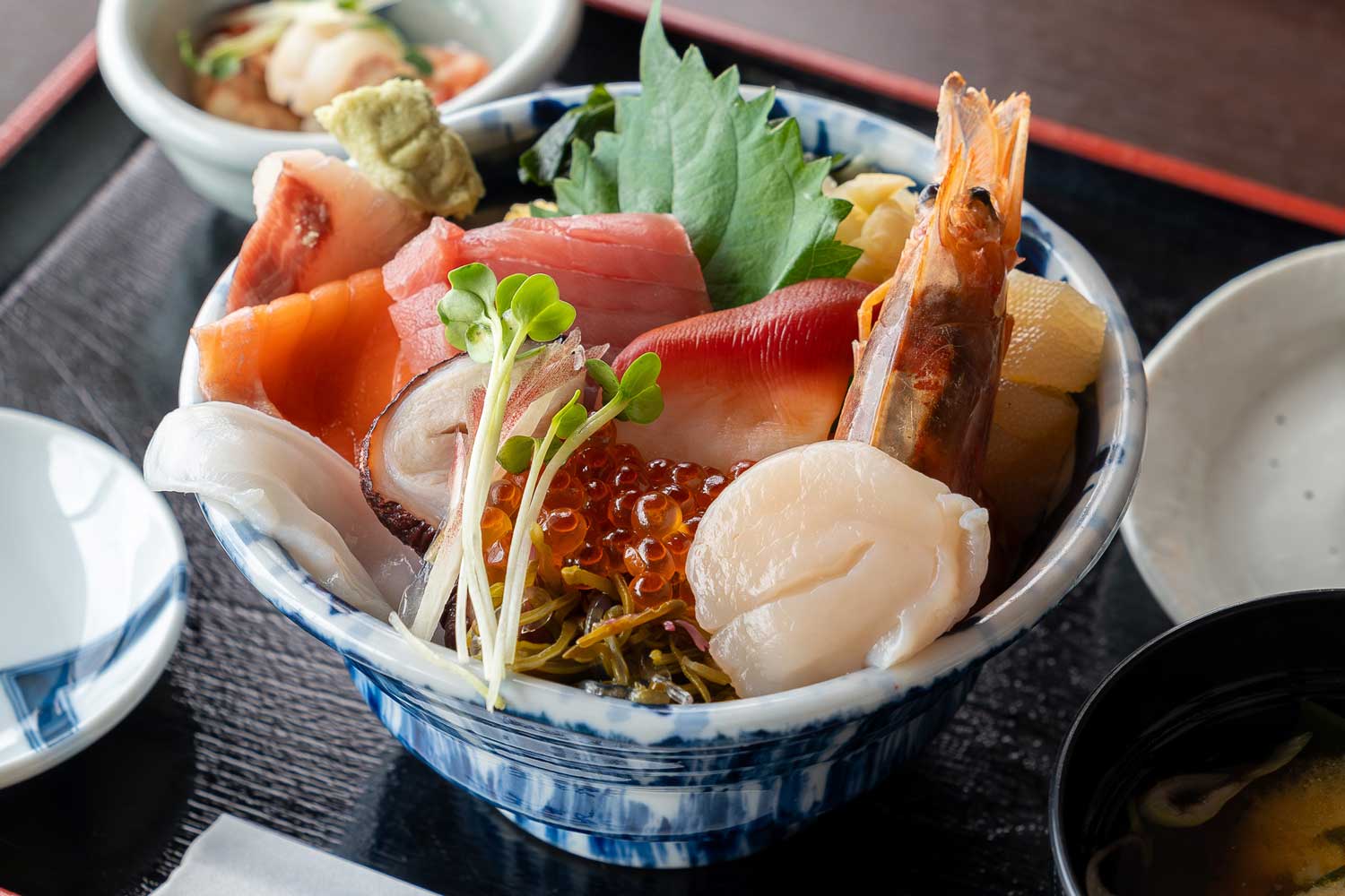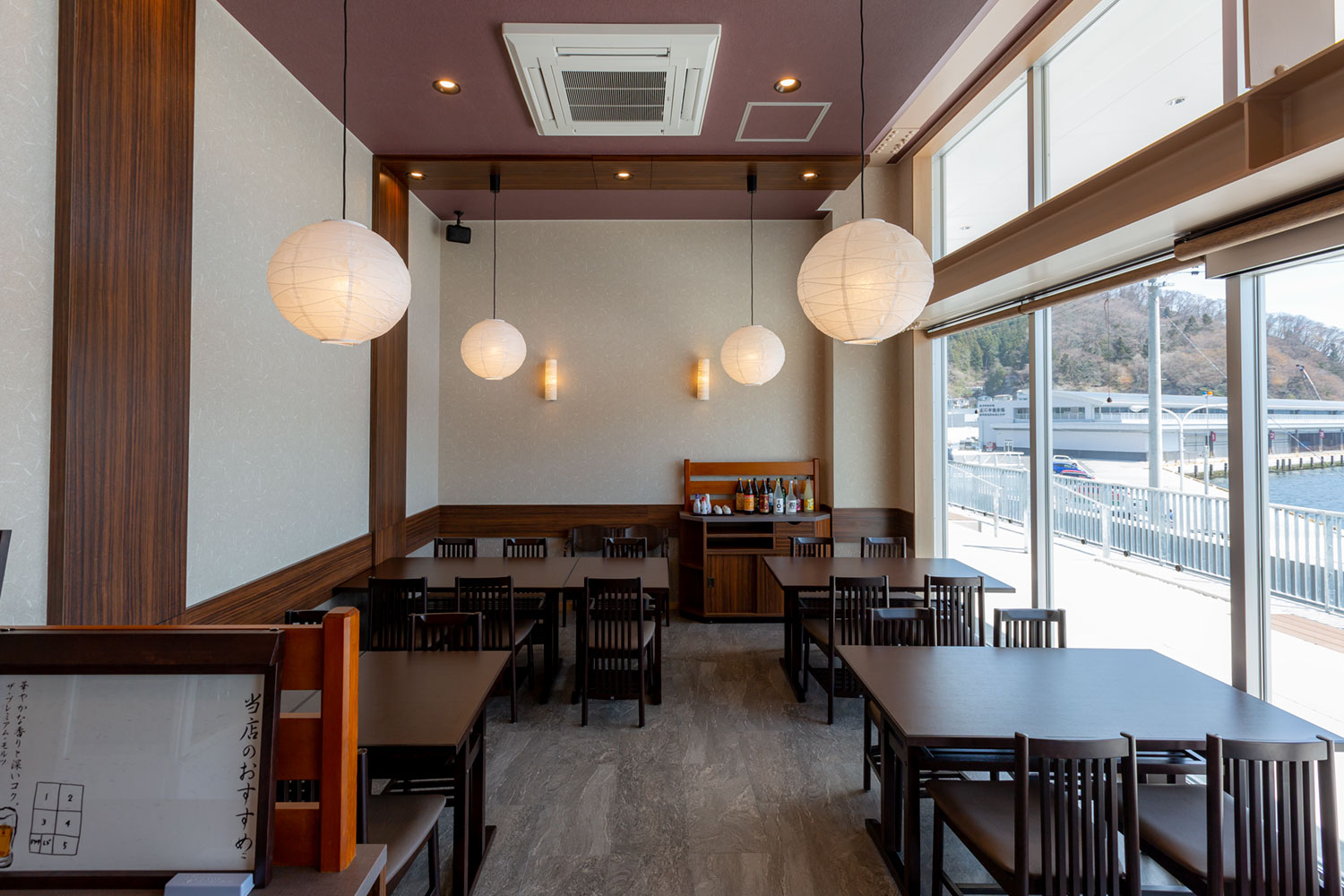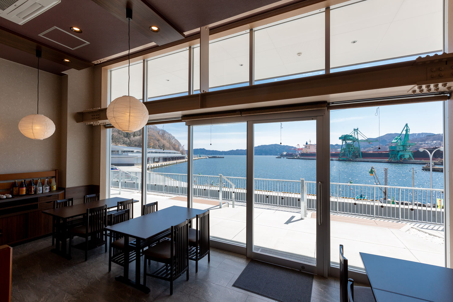 釜石市内最大級の水産会社、平庄がプロデュース。地魚の素材を活かしたメニューを提供。テラス越しに開けた釜石湾を眺めながら、落ち着いた雰囲気で三陸の旬の魚介が味わえます。
